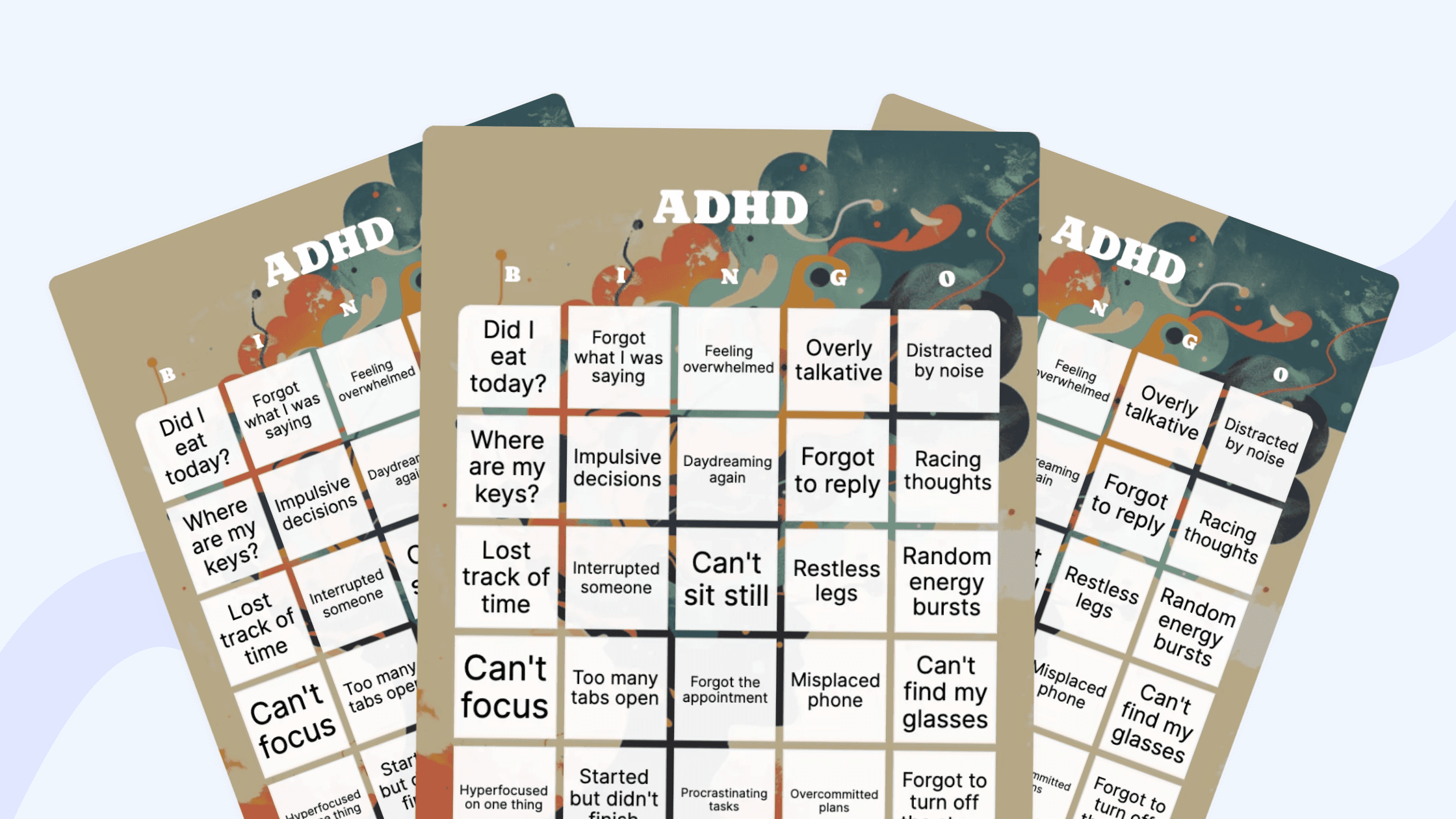 Make niche versions, like “ADHD student bingo,” “ADHD in relationships,” or “ADHD + working from home,” to tailor it to your audience or group.