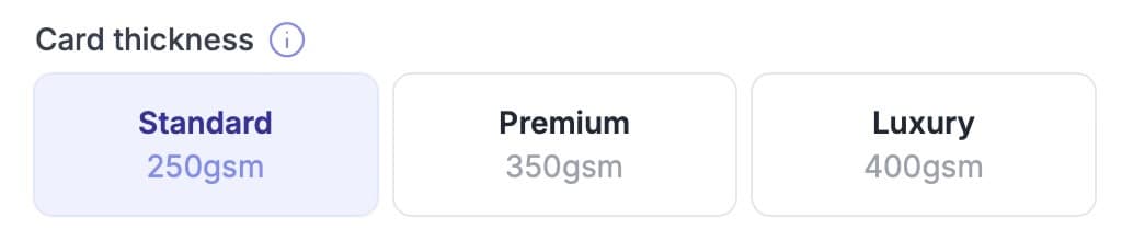 Choose from three card stock options: 250gsm as standard, a more robust 350gsm, and a luxurious 400gsm for those grand occasions requiring cards that last and last.