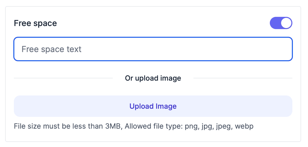 Within the setup area of the card generator, simply scroll down to 'general settings' to find the free space option.