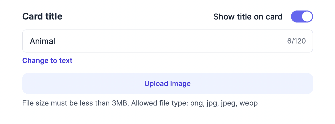 Underneath the card title, simply select 'change to logo' to have the option to upload an image.